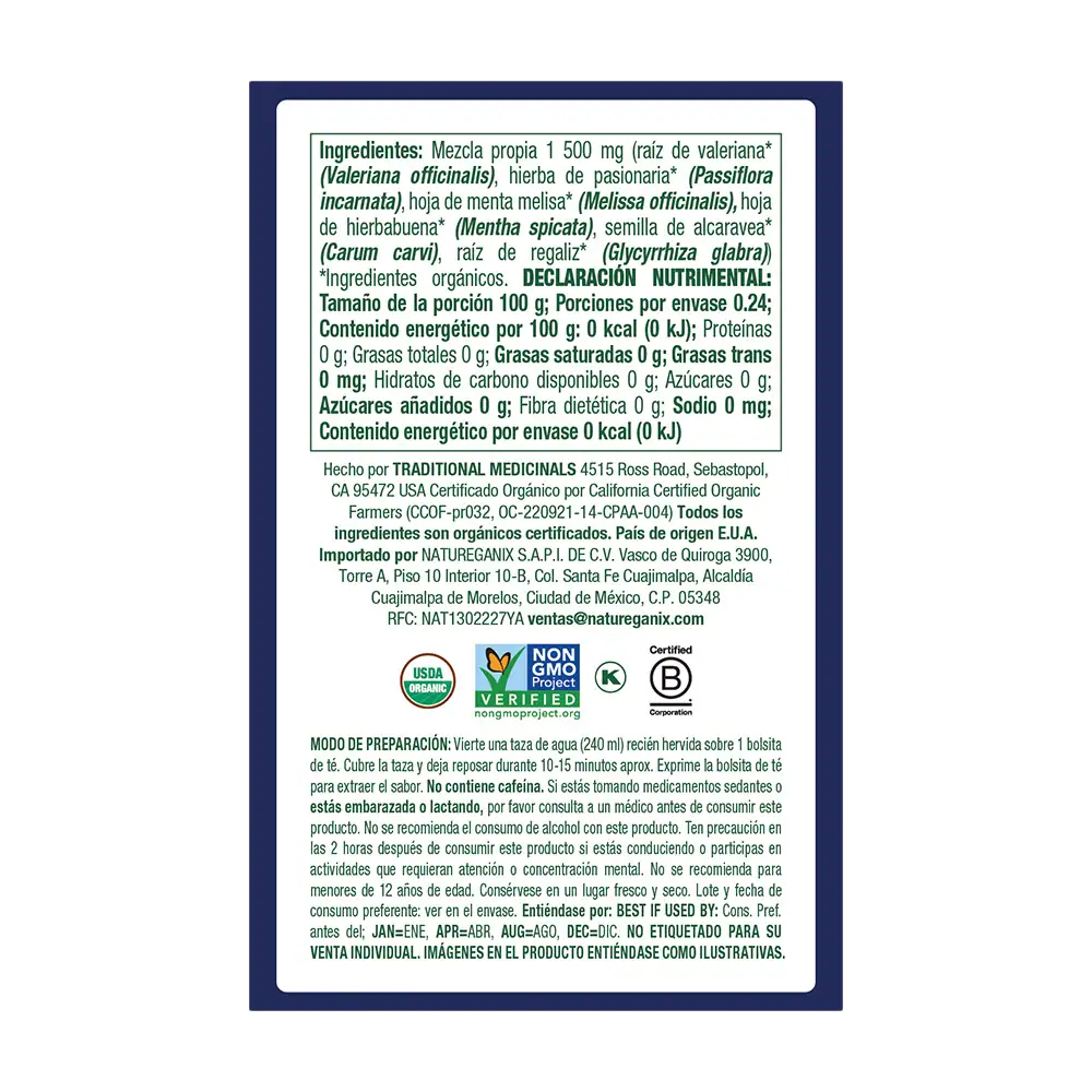Nighty Night Extra® es una mezcla herbal cuidadosamente elaborada para favorecer un descanso profundo y reparador. Su ingrediente estrella, la raíz de valeriana, utilizada por siglos en la herbolaria tradicional, se combina con hierbas calmantes como la pasiflora y la menta. Este té orgánico es una opción natural para quienes buscan dejar atrás el insomnio ocasional y despertar renovados.
